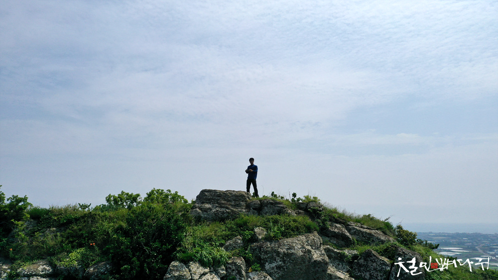 바굼지오름 정상에 서있으면,