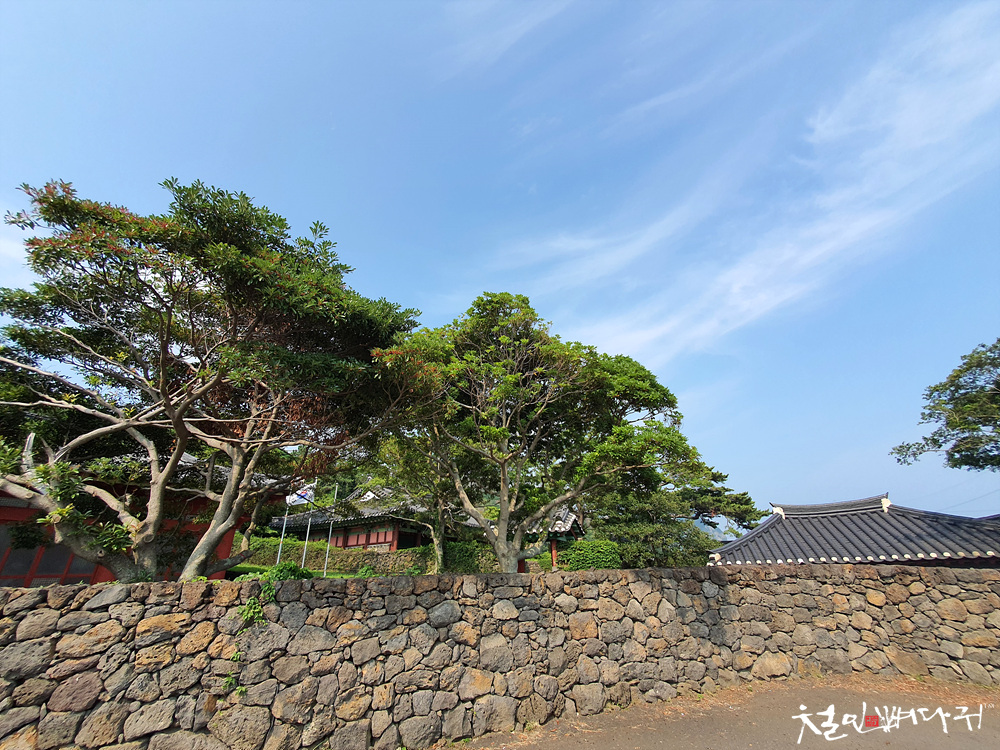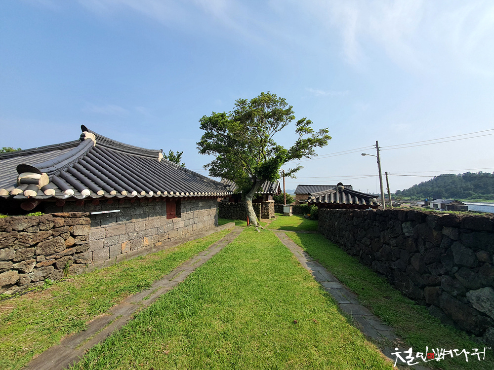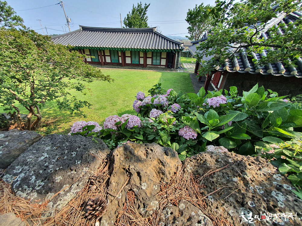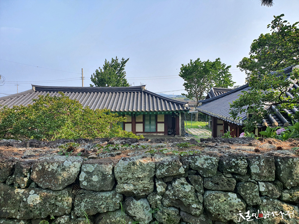 제주도 돌담이 둘러 쌓여있고,