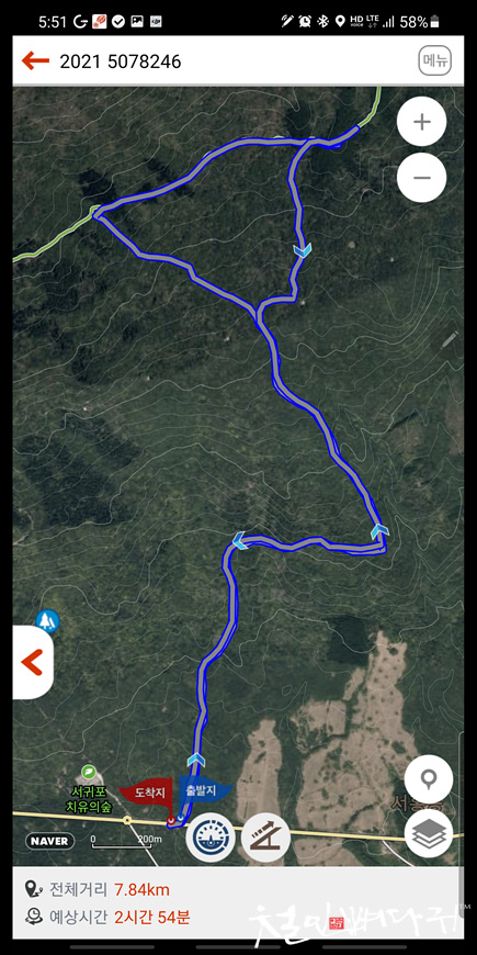 전체 숲길의 이동경로를 확인할 수 있는