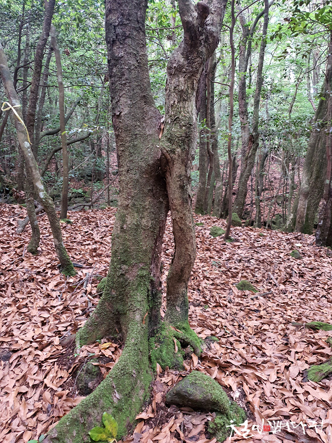 조금 더 가니 두그루의 나무가 붙어있는 나무들을
