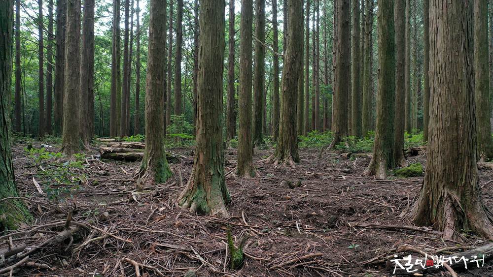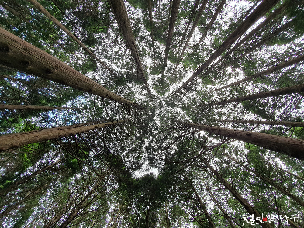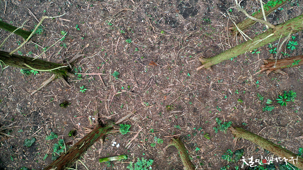 드론을 날릴 수 없어서, 편백나무숲군락지에서