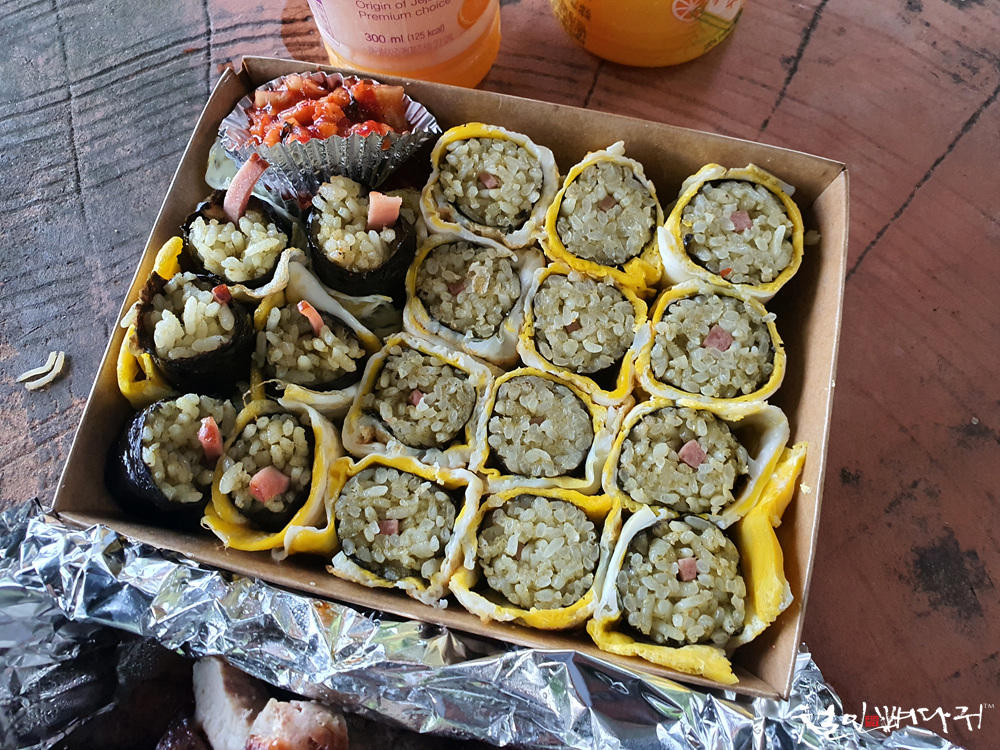 올레계란말이전복김밥3줄.