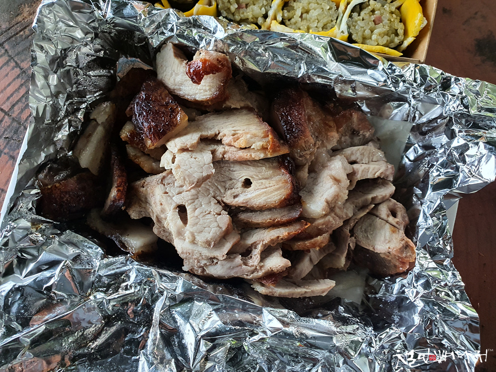 흑돼지바베큐 썰어서 담아준 것과