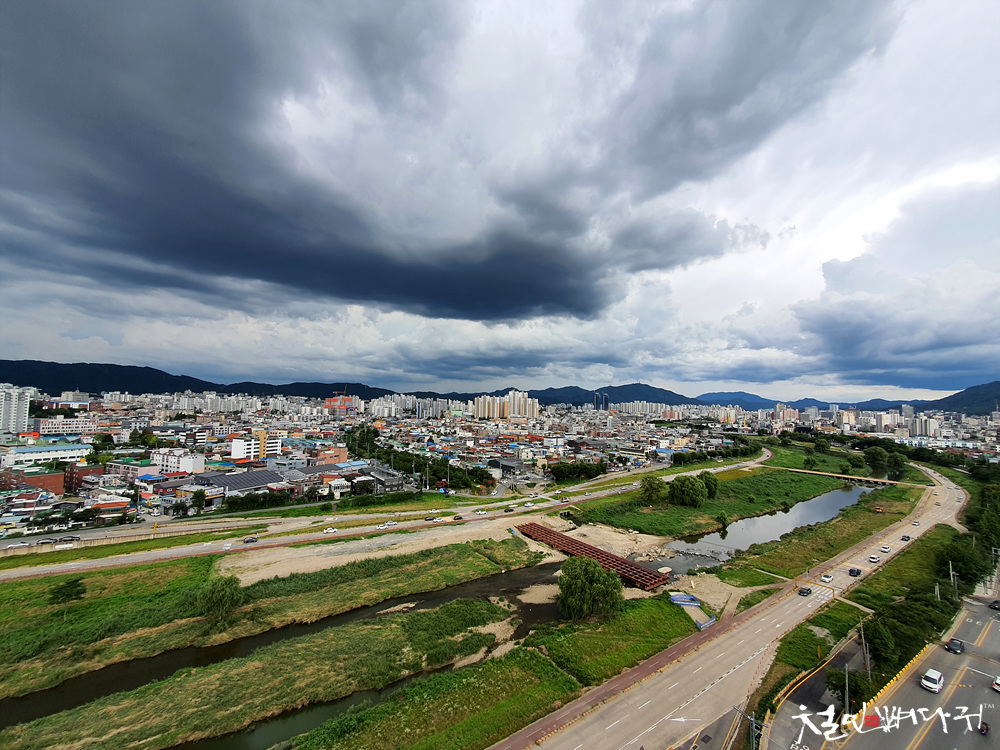 오늘은 곧 쏟아질 것 같은 먹구름으로 변하는