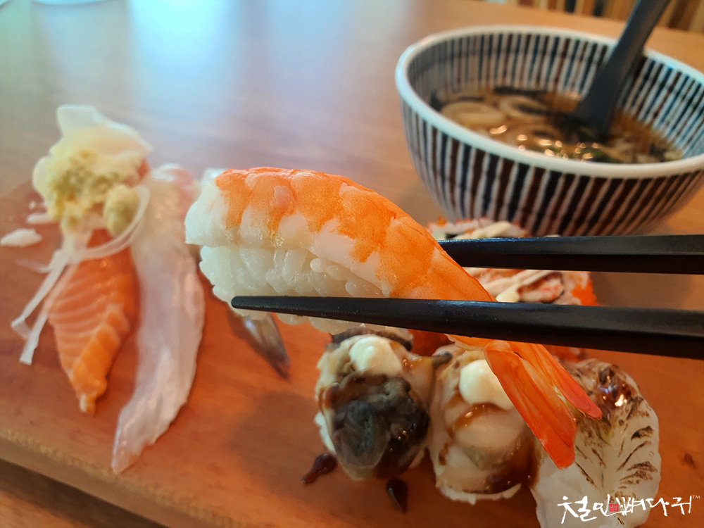 초밥13개 먹고나니 든든하고, 배불렀습니다.