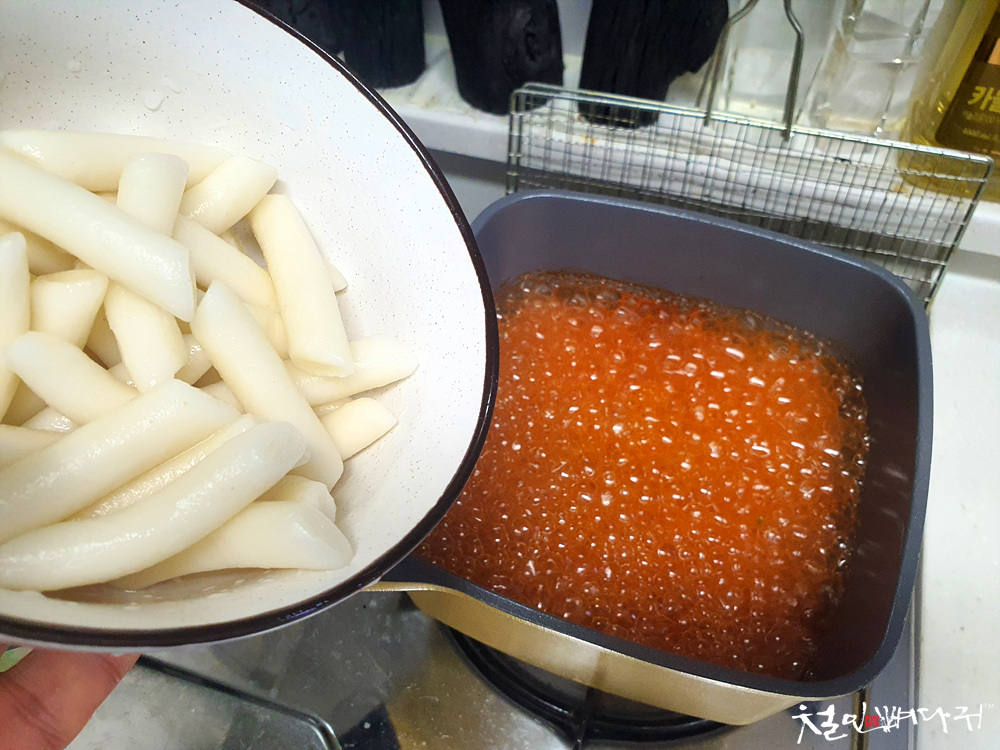 물을 조금 많이 넣어서 국물떡볶이처럼 되었네요.