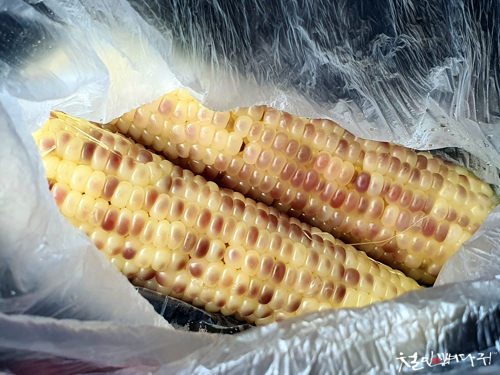 옥수수 하나를 덤으로 줘서 옥수수 4개반을 구입했네요.