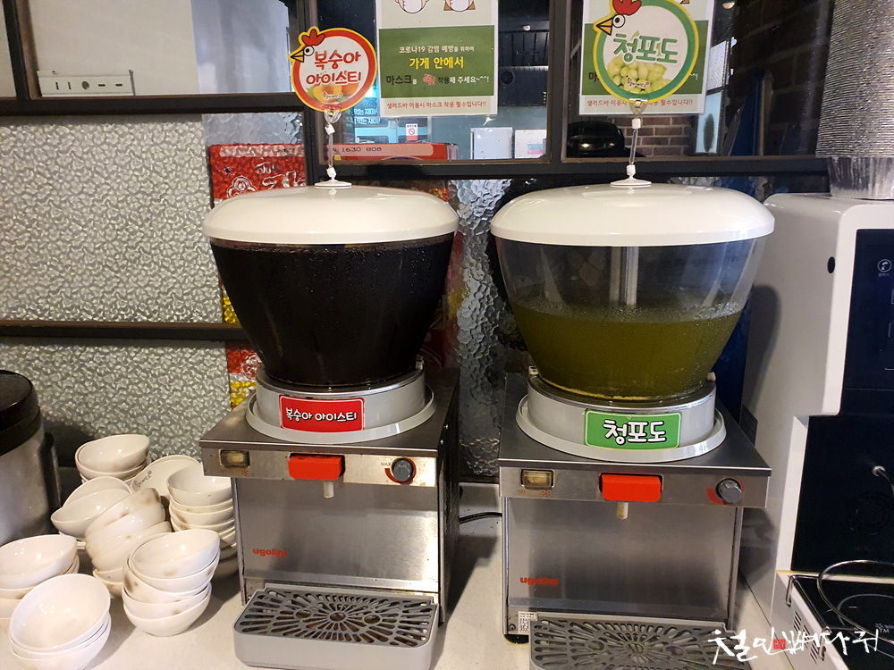 음료를 마실 수 있고, 닭갈비 먹을 수 있는