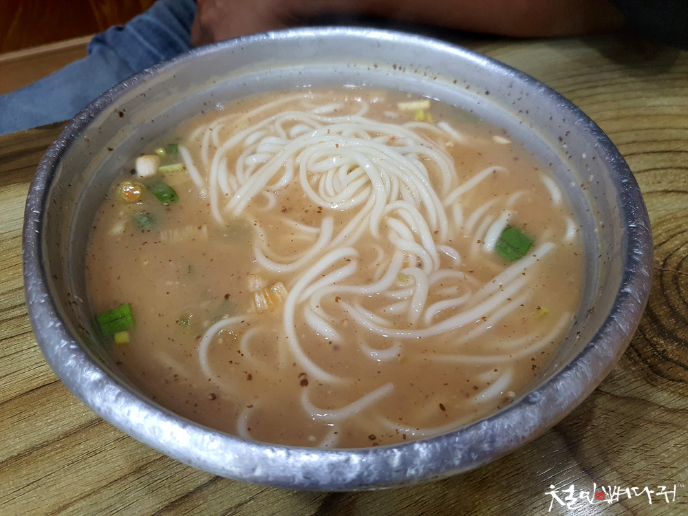 신도칼국수의 뜨근한 칼국수 국물은