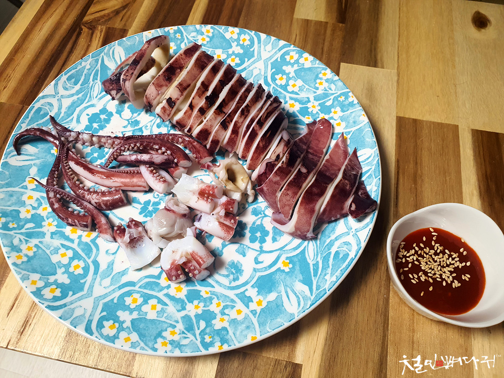 잘 썰어서 초장 찍어서 잘 먹었습니다.