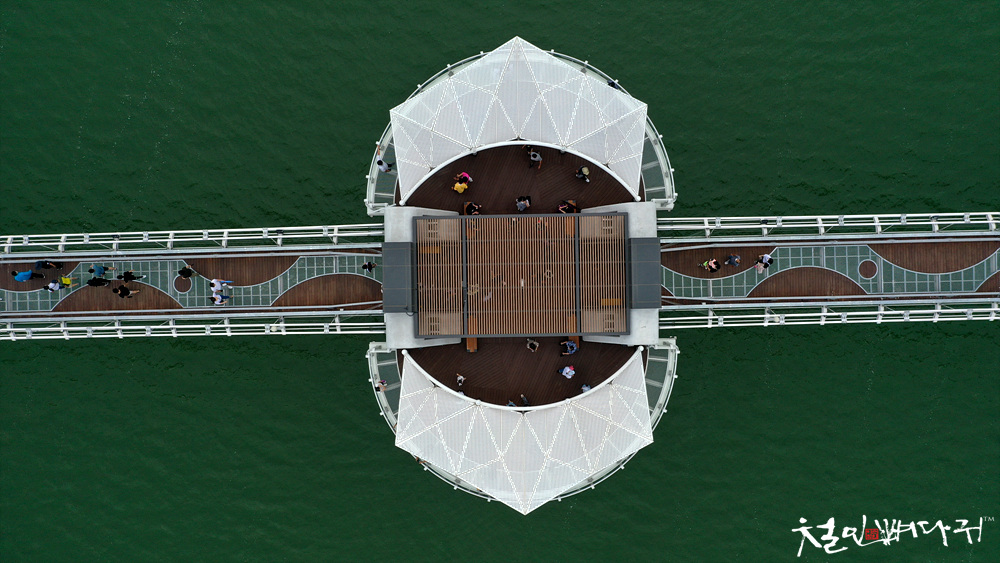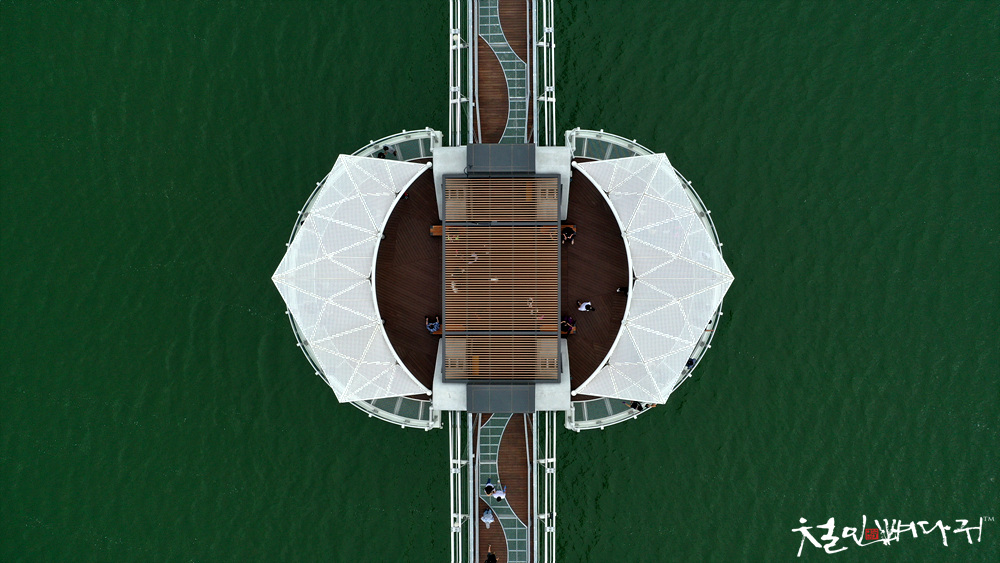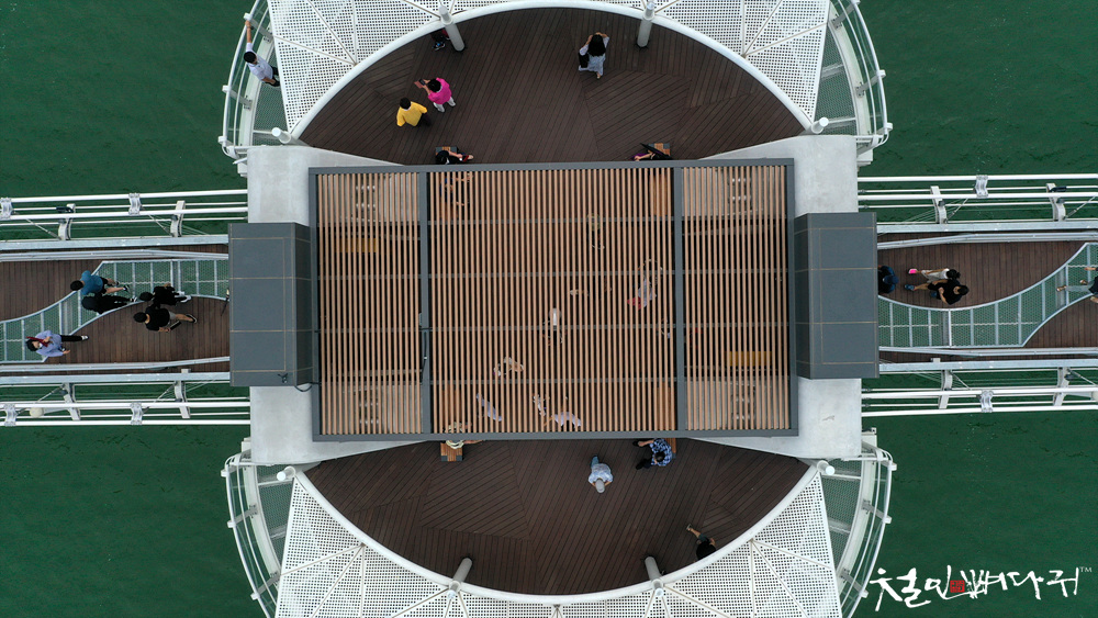 탑정호출렁다리 중앙의 휴게쉼터.