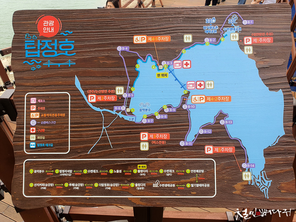 탑정호 주변에 주차장들이 여러 개 있었고,