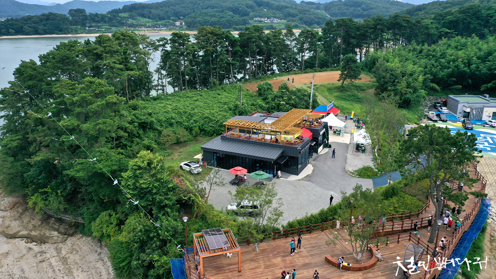 탑정호출렁다리 건너편 음식점 건물