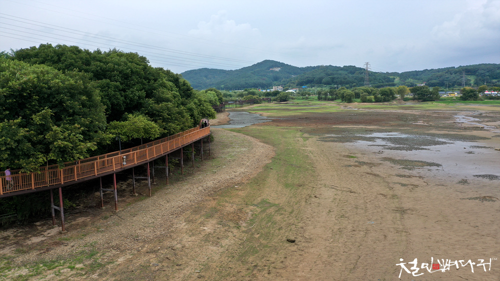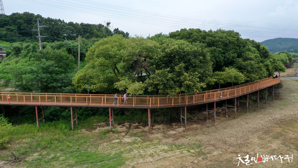 탑정호를 따라 다리처럼 만들어진 데크길은
