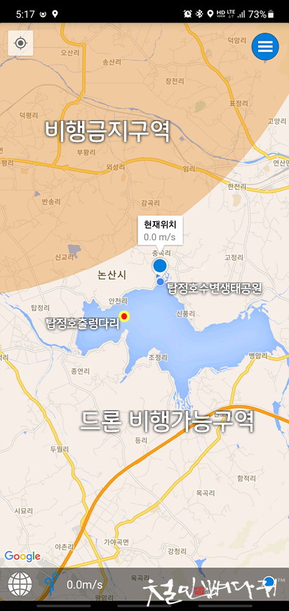 탑정호는 드론비행금지구역에서 벗어난 지역이라