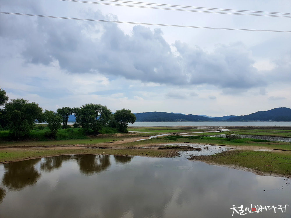 길게 탑정호의 절반에 걸쳐 이어집니다.