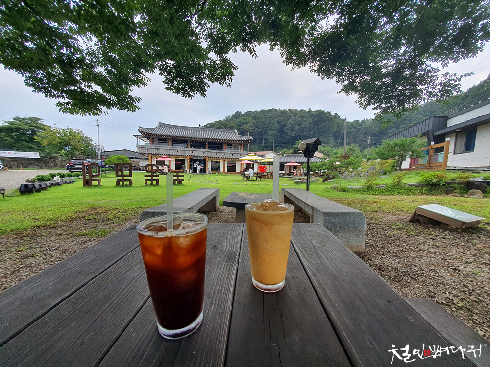 주문한 음료 받아서 느티나무 아래로 이동했습니다.