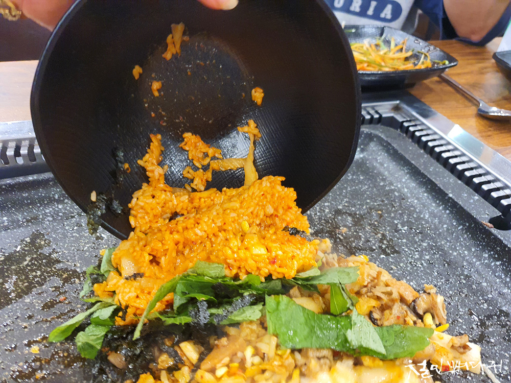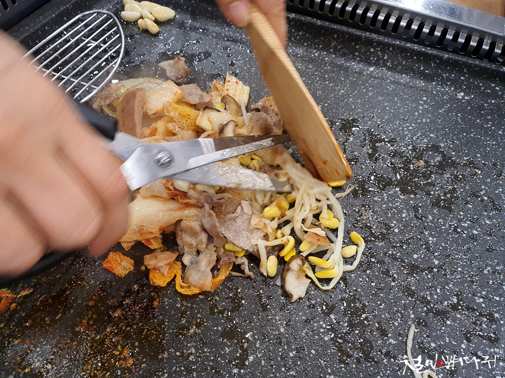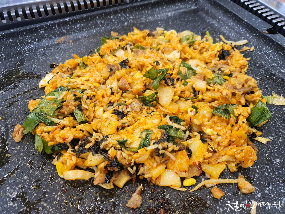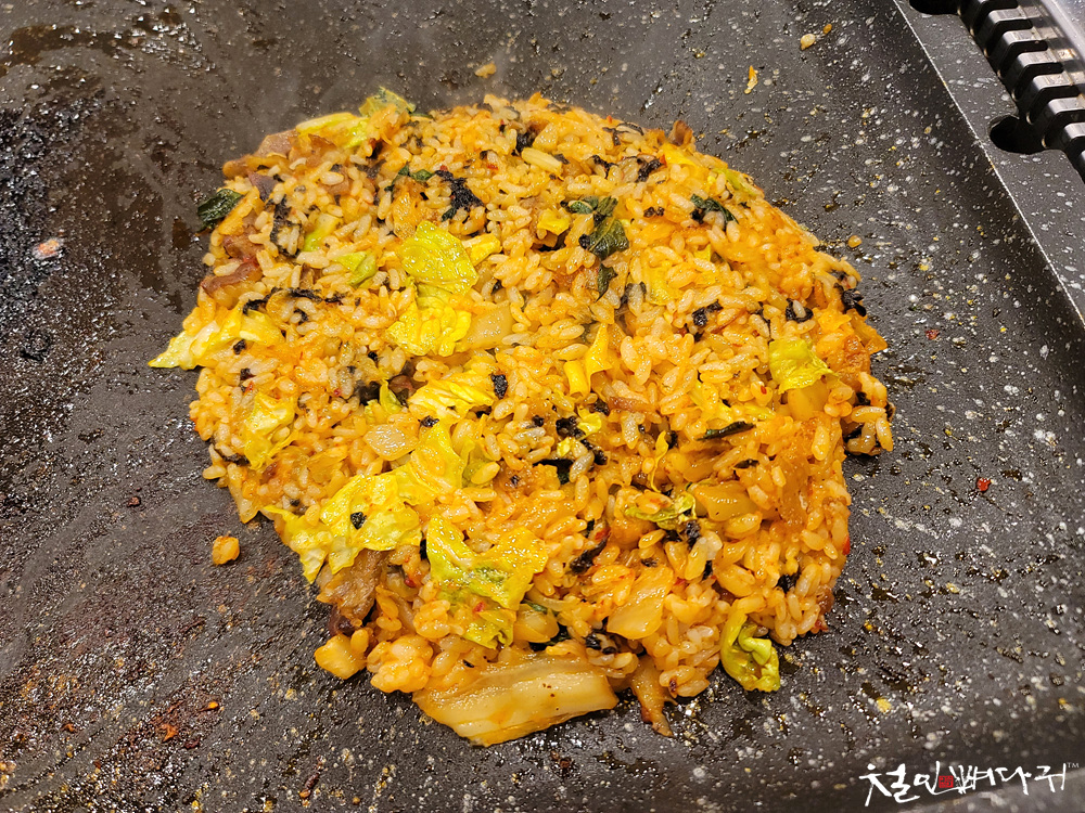 잘게 잘린 고기들과 잘 섞어서 불판에 다시 한번