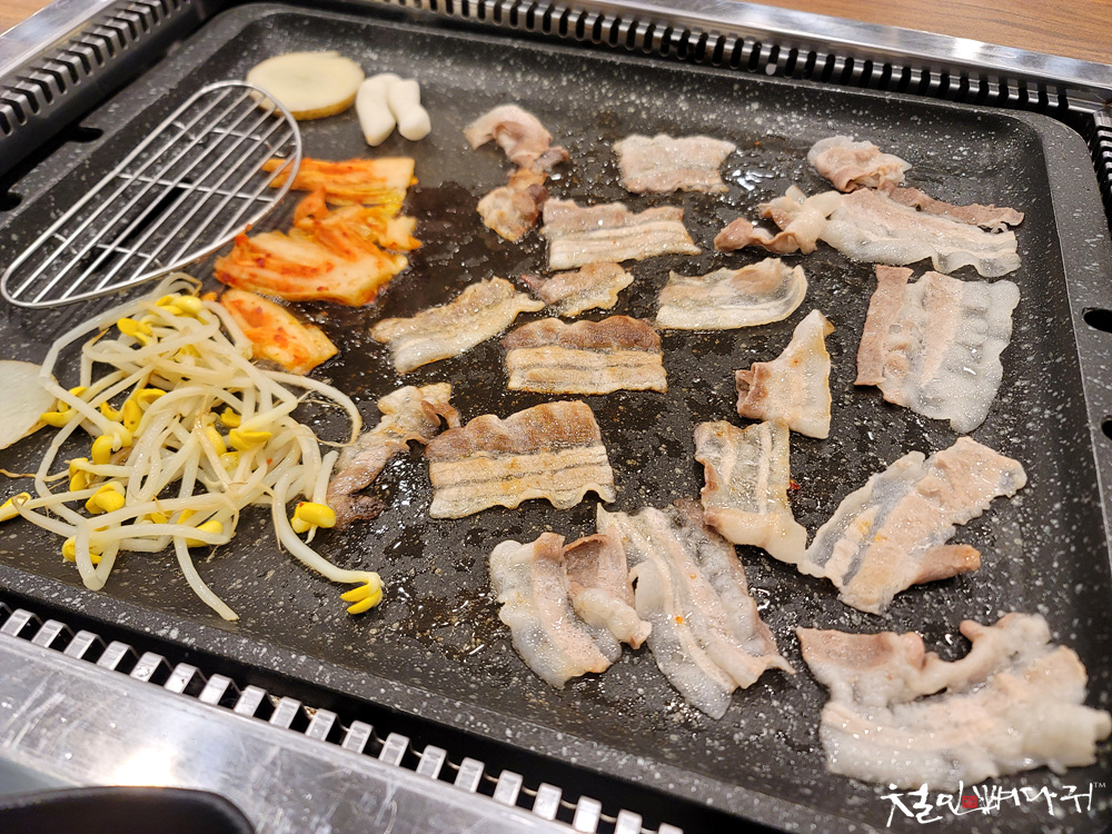 불판 세팅이 끝나고, 고기 굽기 시작합니다.