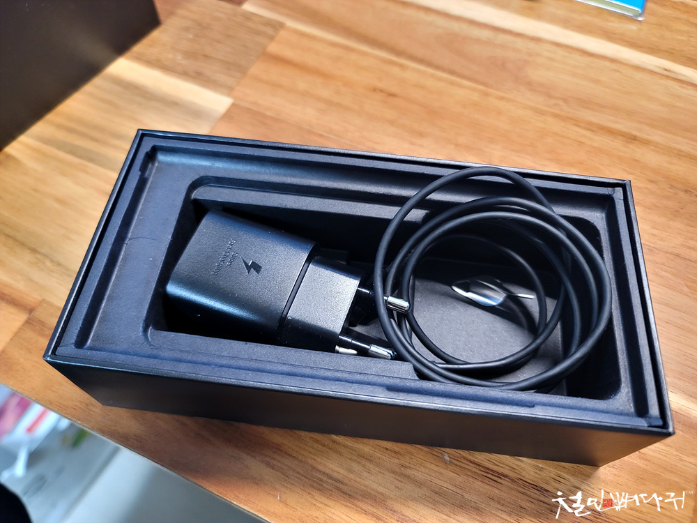 이어폰 같은 구성품은 빠졌고, 기본적인 충전기와 케이블만