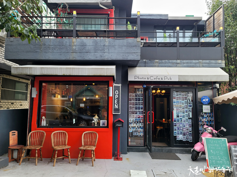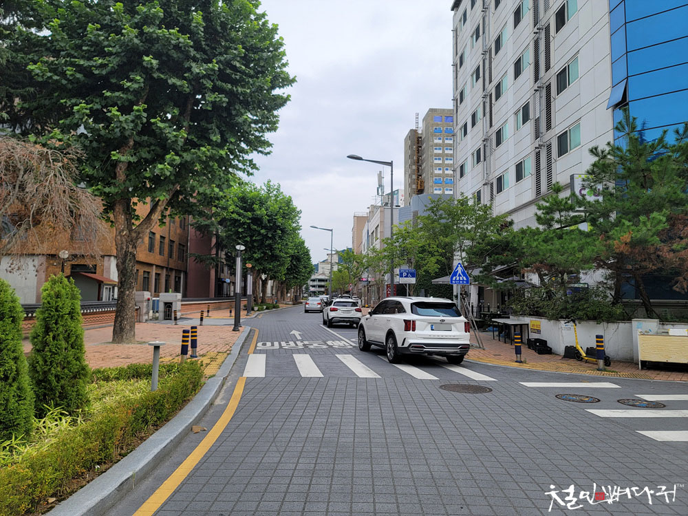 일방통행 도로입니다. 이곳에는 카페, 음식점들이