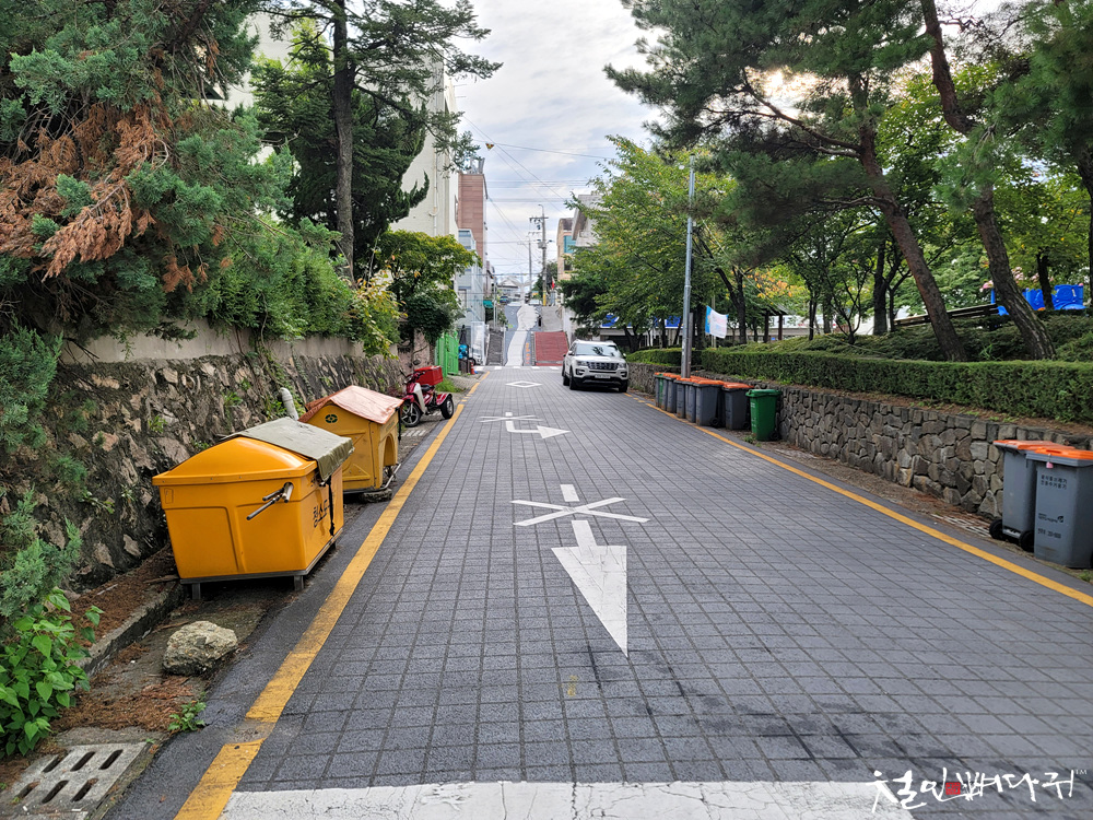 골목 끝에는 공원이 조성되어 있고, 공원 너머에는