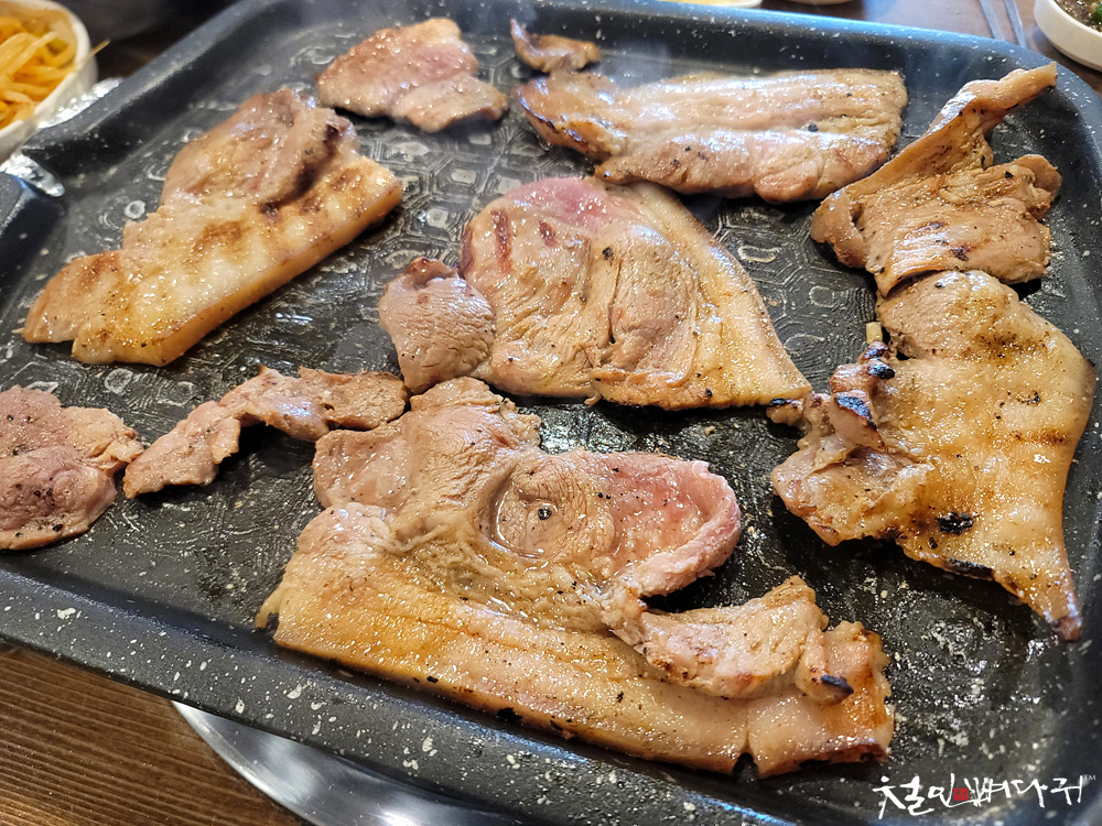 불판에 익히고 잘라서 맛있게 먹어주면 됩니다.