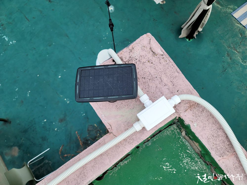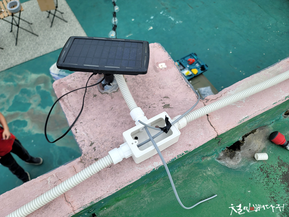 전선은 옥상의 상부에 안 보이게 고정했습니다.