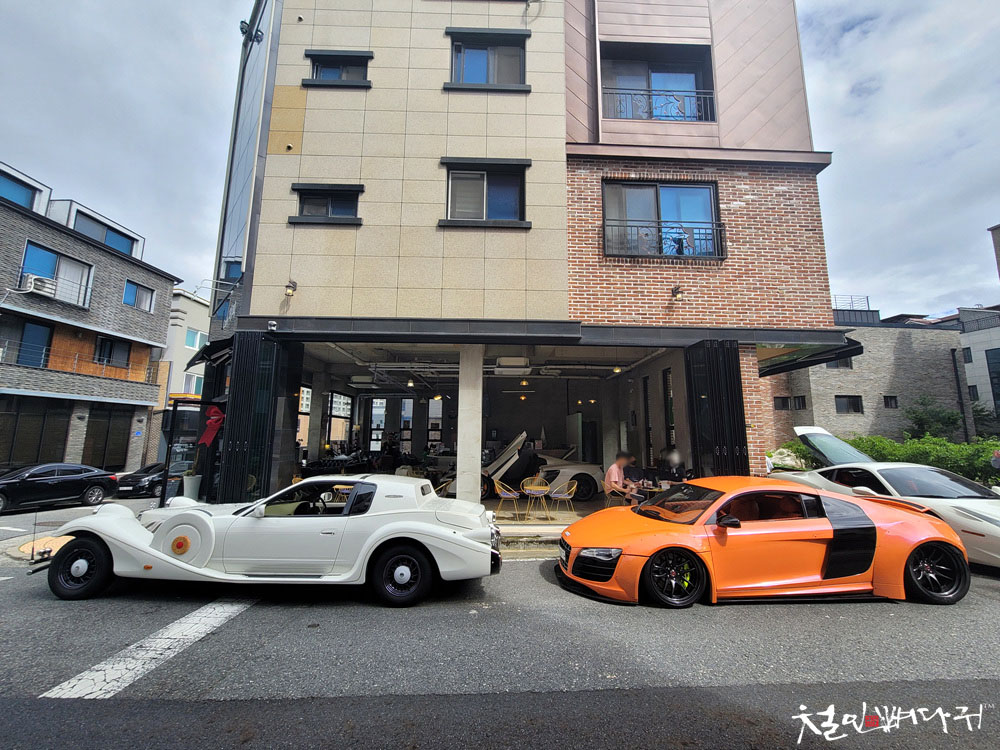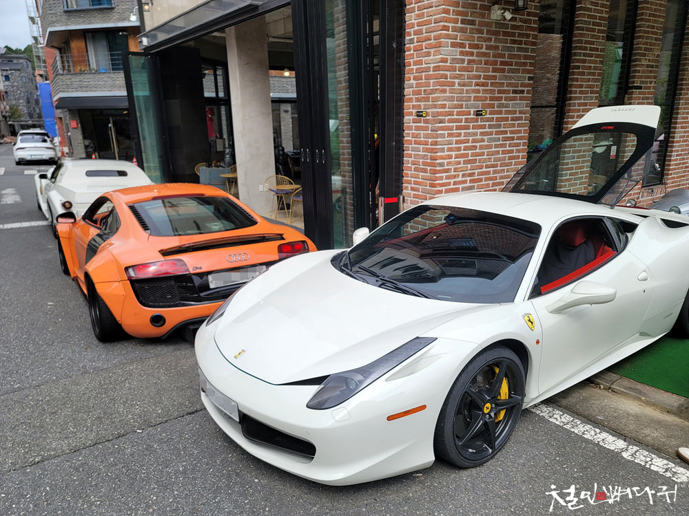 카페 주변으로 슈퍼카들과 이름 있는 차들이