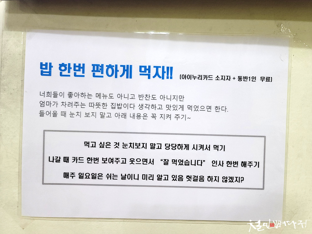 아이누리카드 소지 아이에게 무료로 식사를