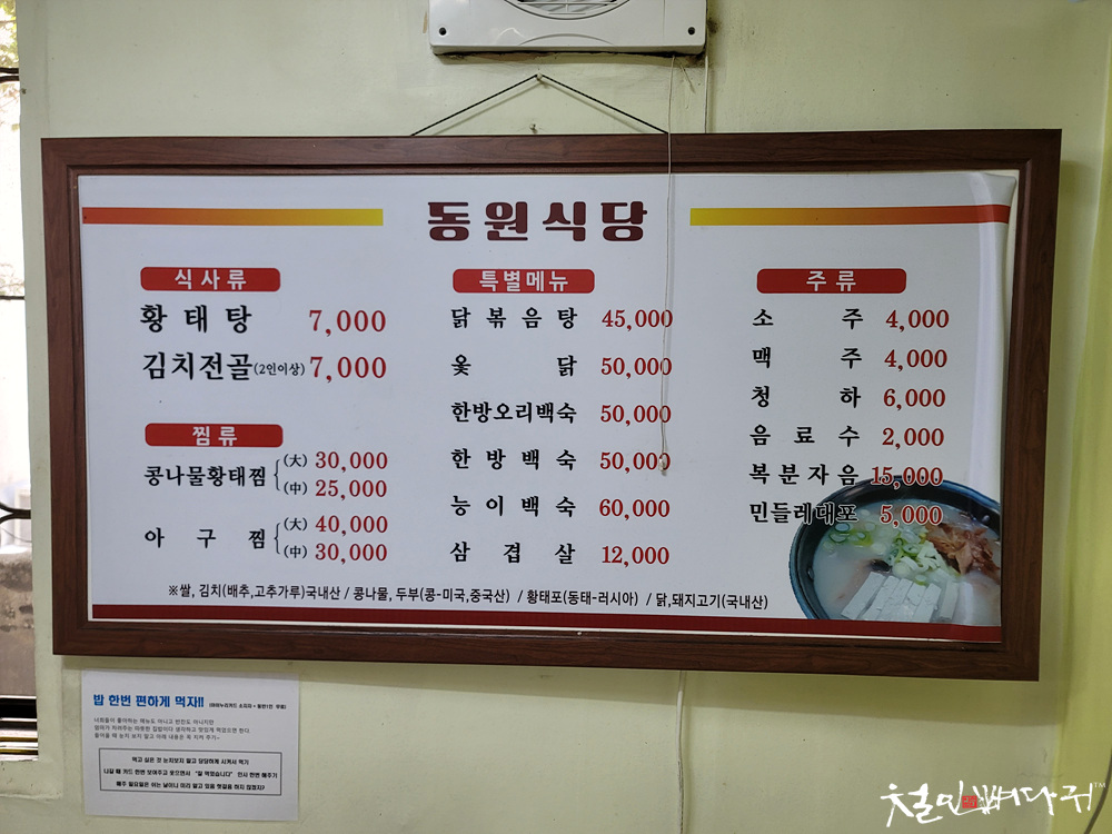 대표 메뉴인 황태탕 같은 경우는 요금 변화가 없네요.