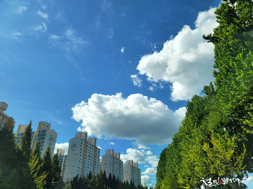 파란하늘과 하얀구름이 상쾌한 가을의 느낌을