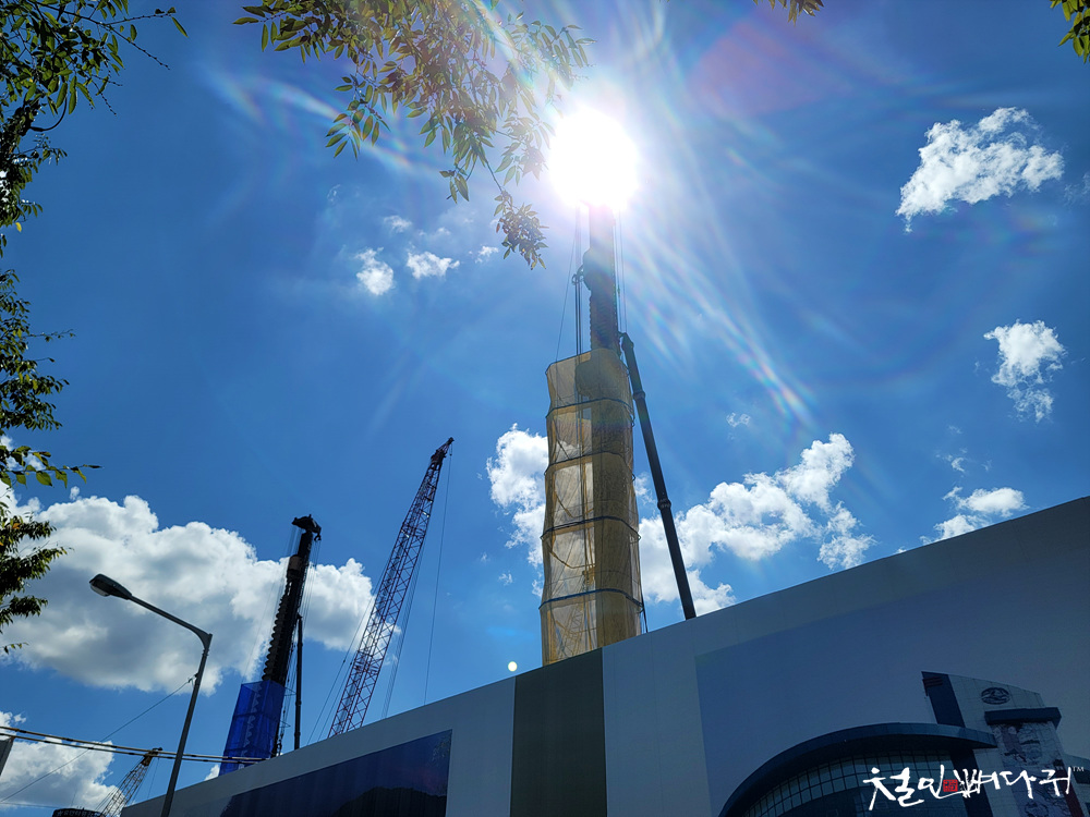 쉬고 있는 공사현장도 파란하늘에 잘 어울린다는