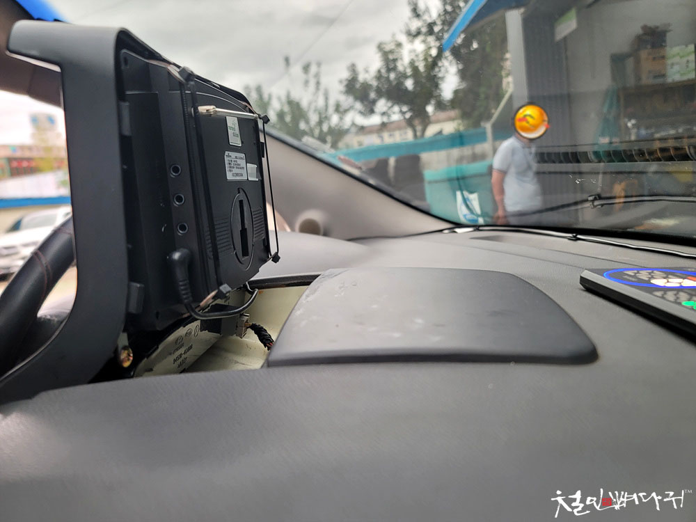 앞유리 밖에서 봐도 내비게이션 뒤쪽이 썬팅때문에