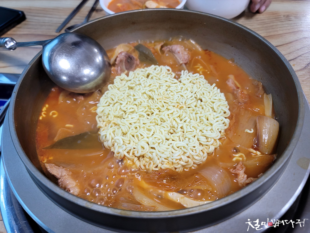 식사를 했는데, 묵은지갈비김치찌개와