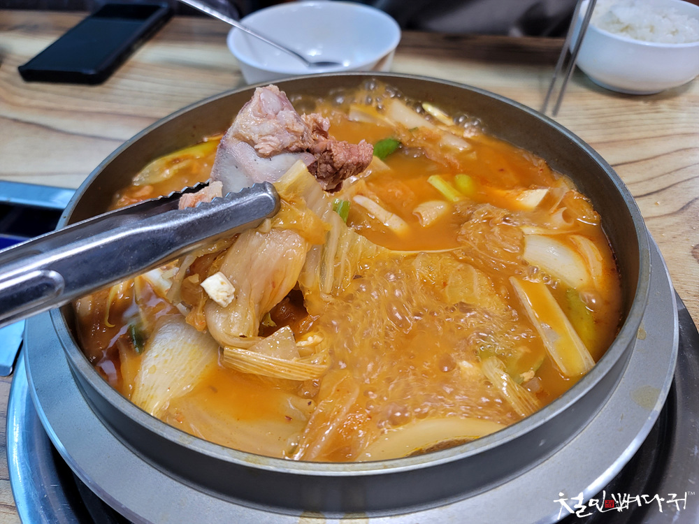 2인 기준의 묵은지갈비김치찌개가 나왔습니다.