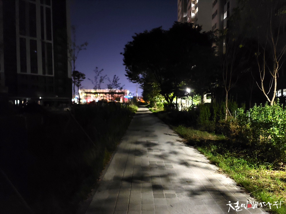 살고 있는 아파트 뒤뜰을 왕복해서 걸었습니다.