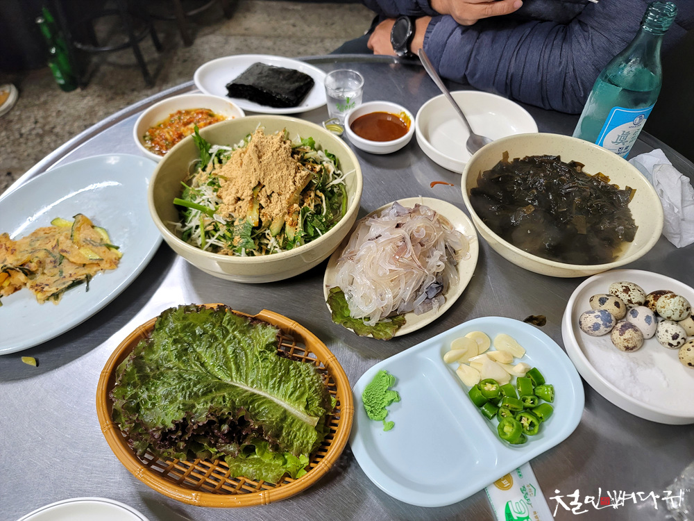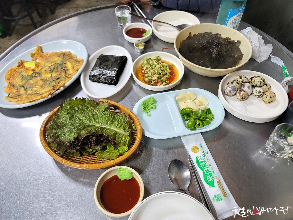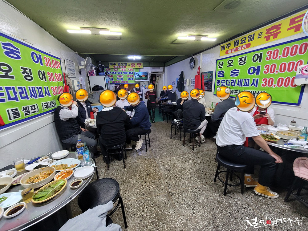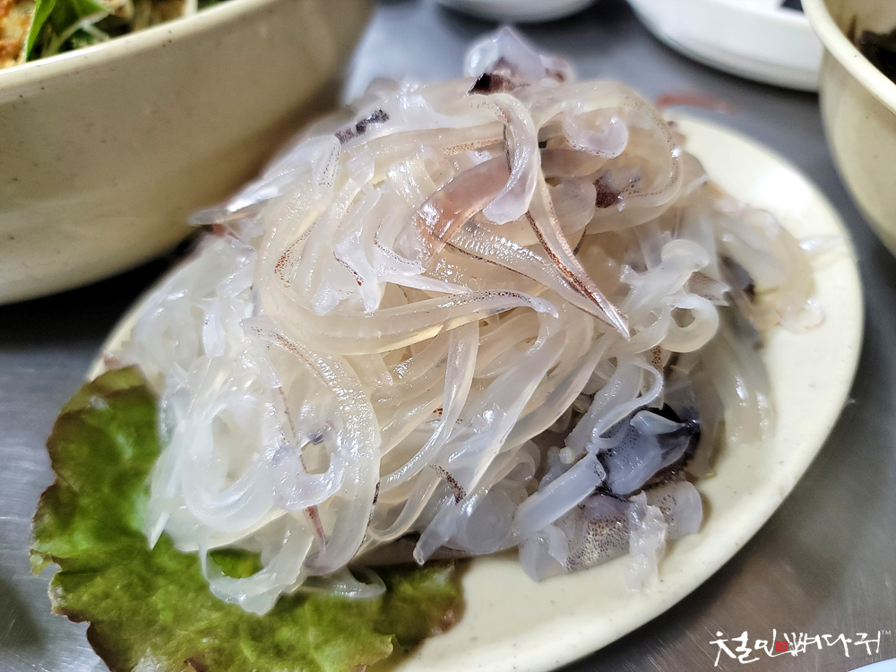 어쩌다 보니 이곳에 와서 오징어회를 먹고 있습니다.