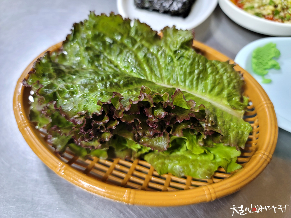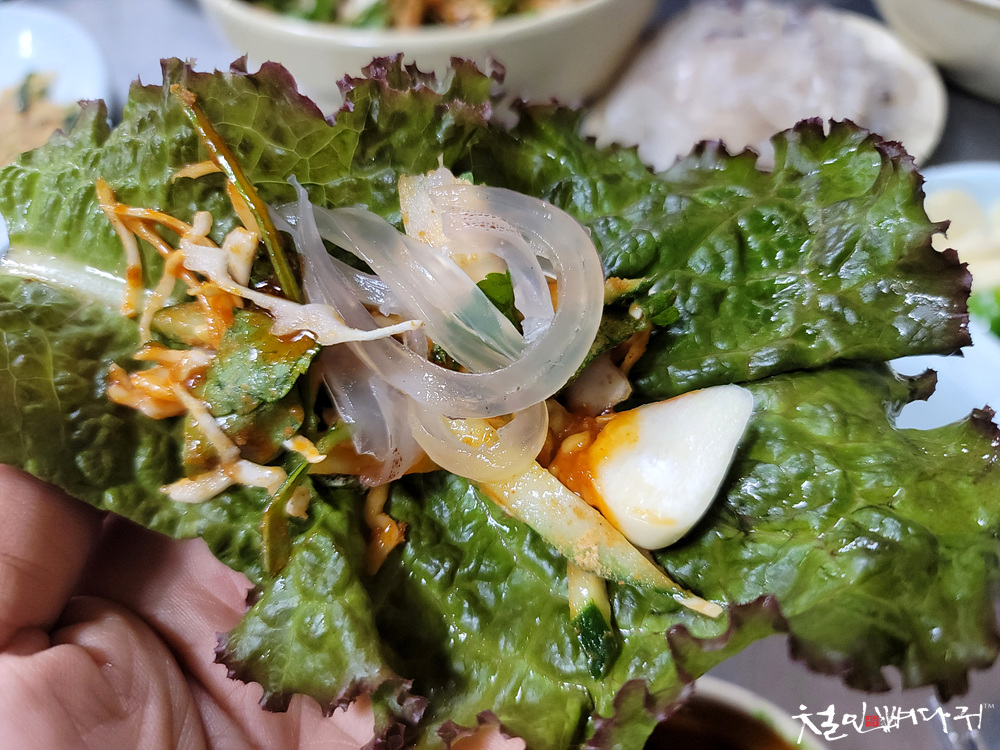 상추에 싸 먹기도 하고, 김하고 먹기도 해서
