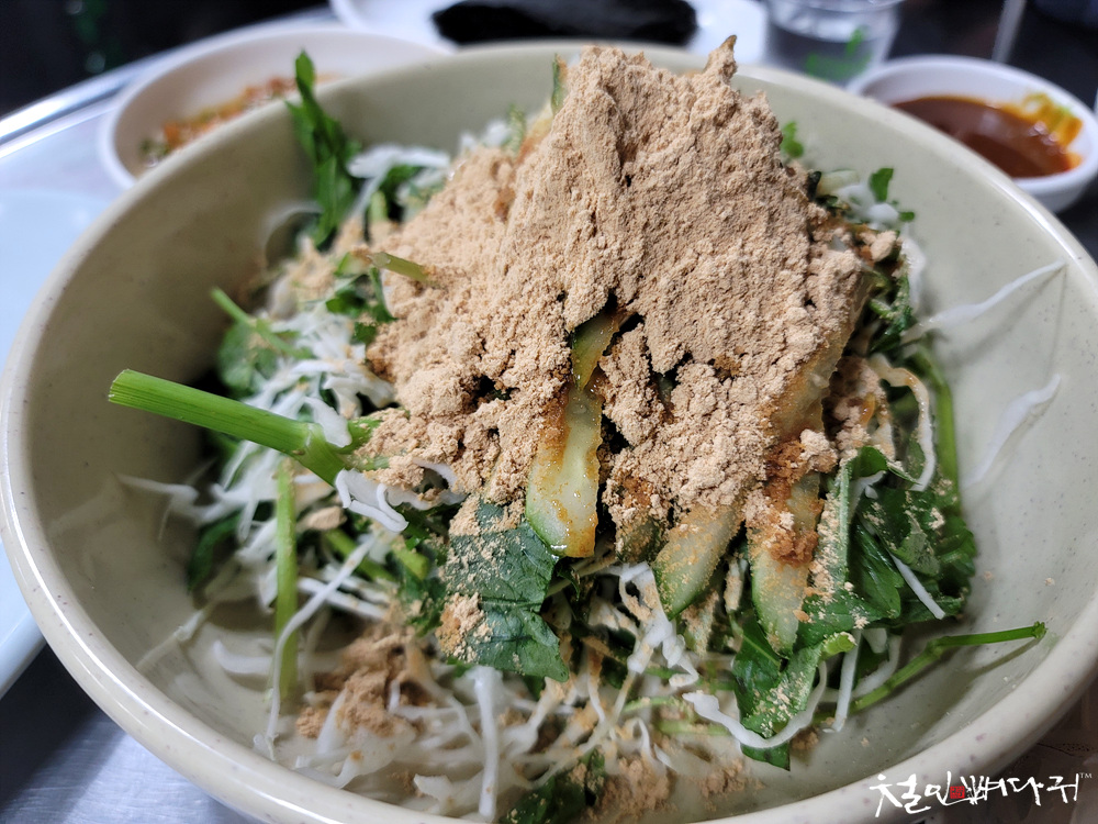 같이 먹으라고 나오는 것이 콩가루를 버무려