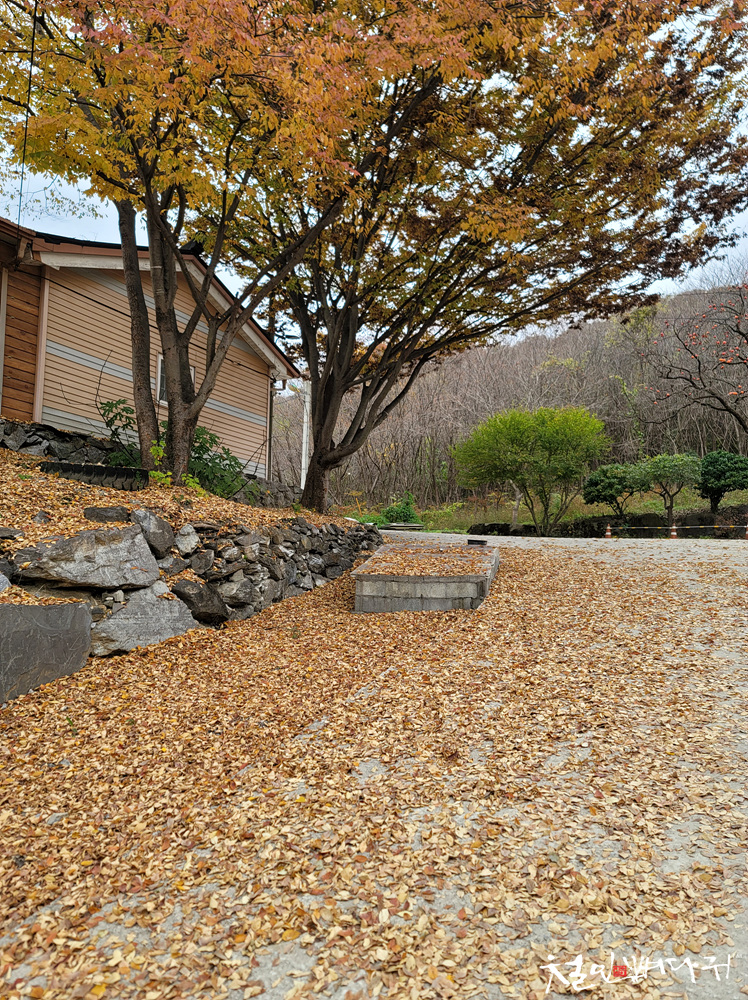 낙엽은 여기저기 흩어져서 깊은 가을의