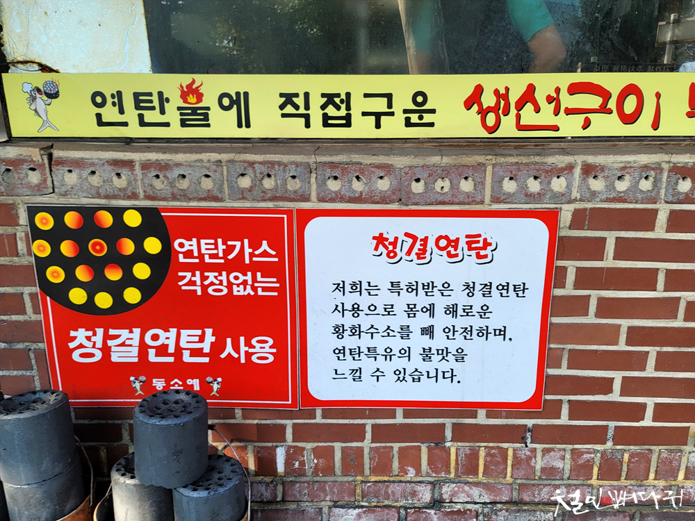 생선을 연탄으로 굽는 곳은 출입구 옆에