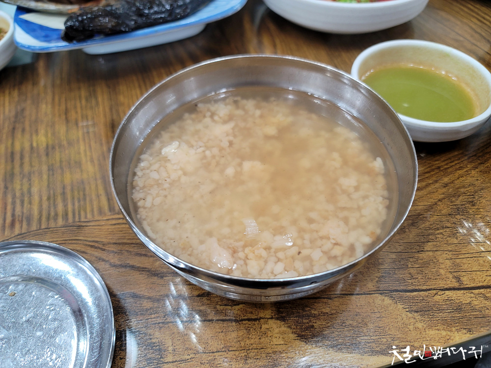 어묵국물과 숭늉이 나오고,