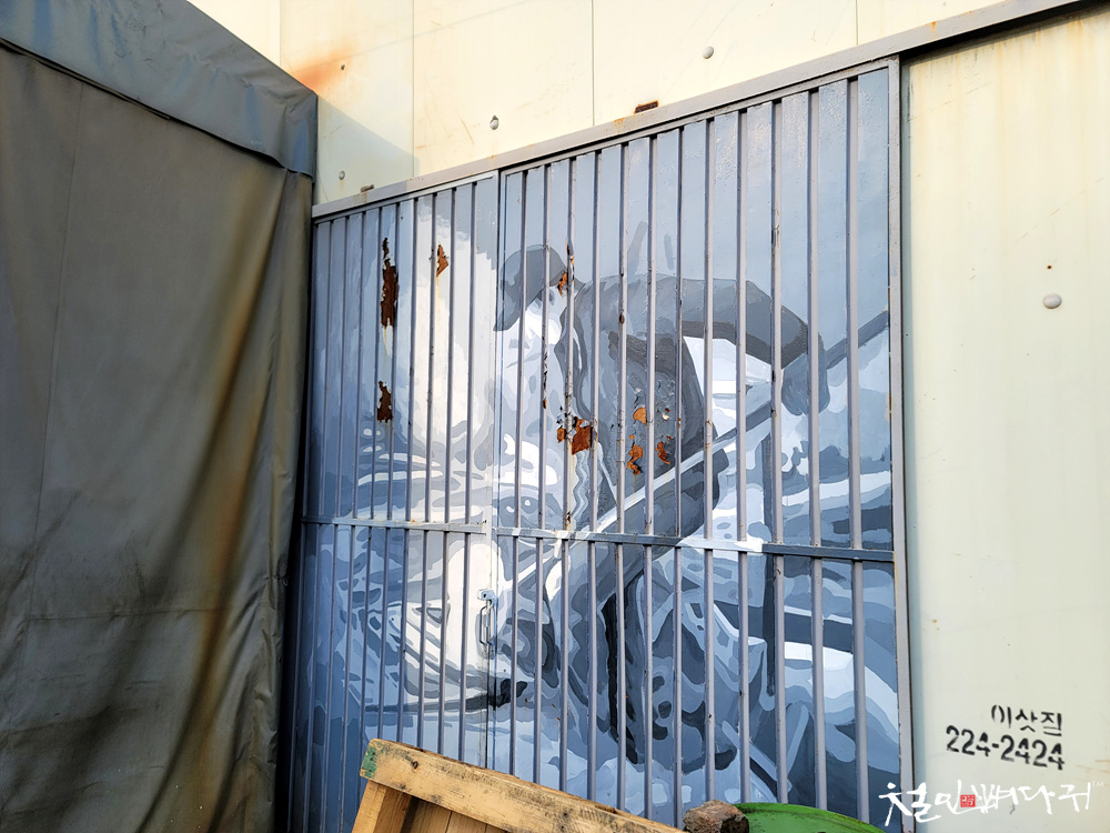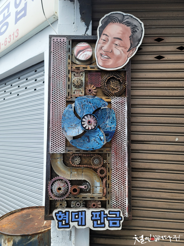 그림들이 각각의 철공소 문에 그려져 있습니다.
