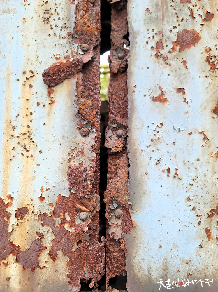 낡고 커다란 철문을 보았고, 녹슬어 구멍이