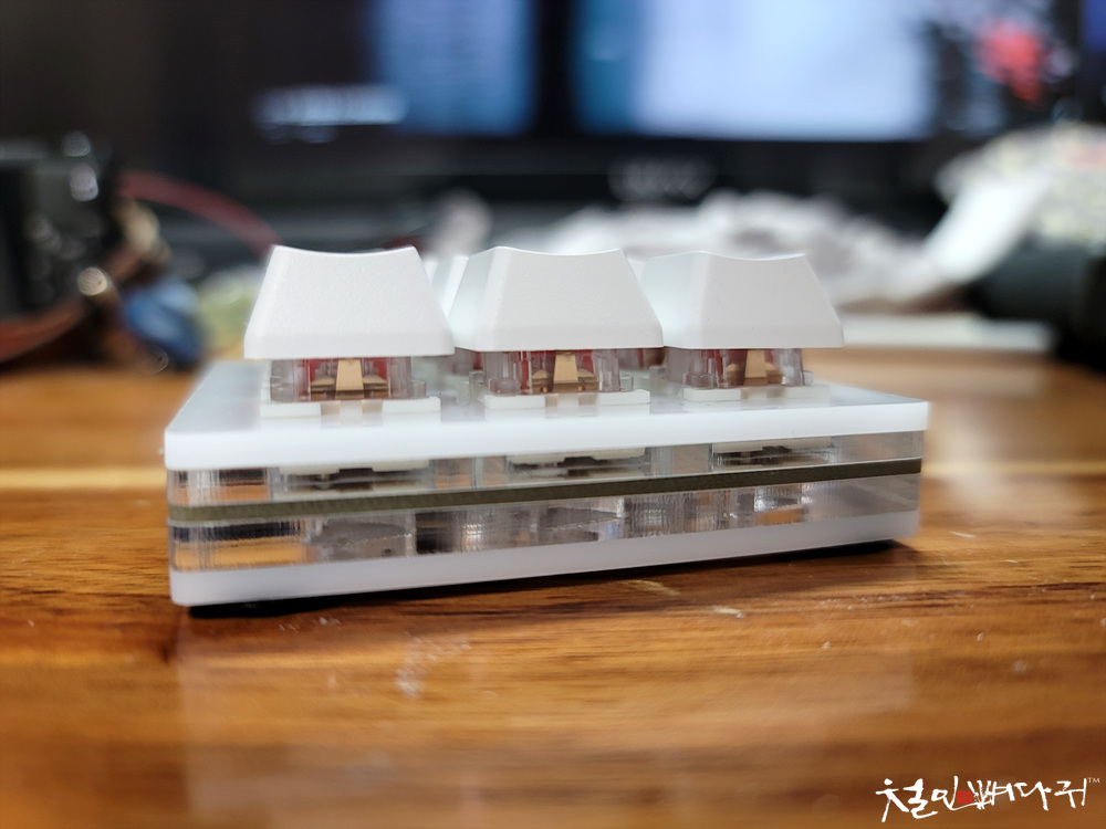백색의 특이점 없는 키보드입니다.