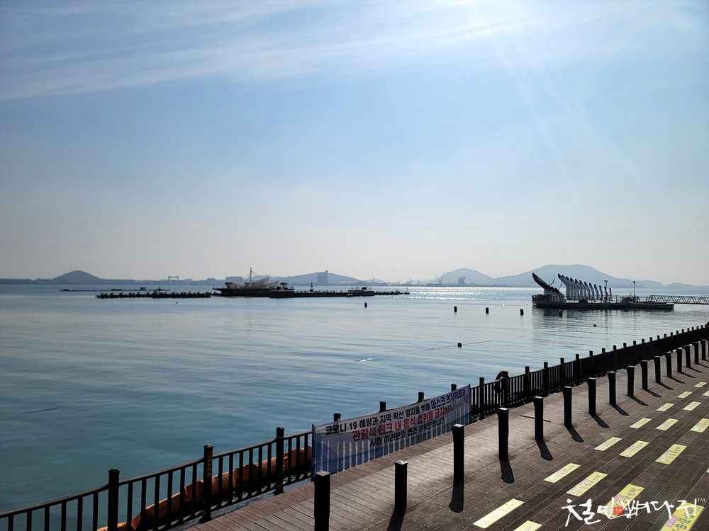 평화광장의 바다분수 시설도 보이고,