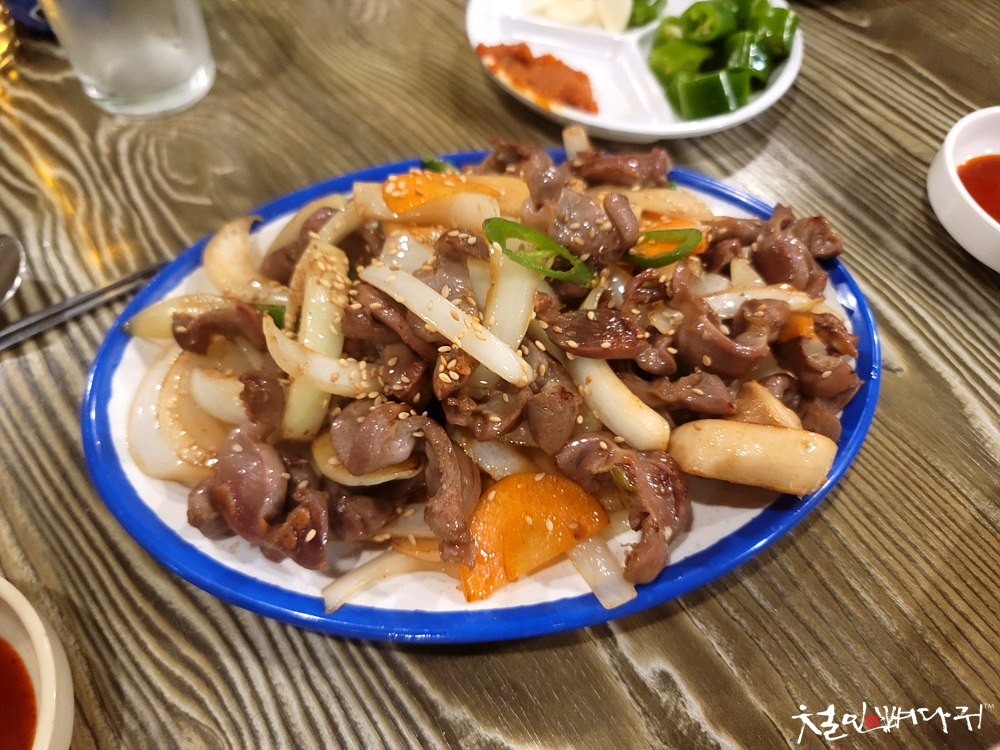 닭똥집 볶음은 고소합니다.