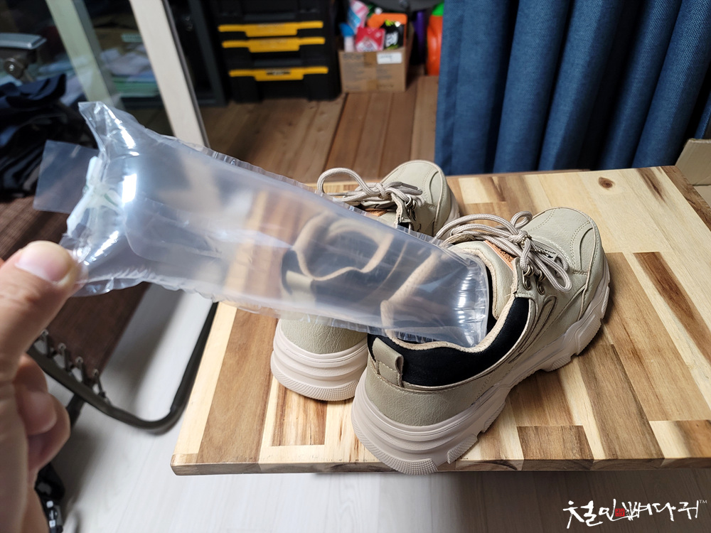 신발안에 신발 구겨지지 말라고 공기튜브를 넣어서