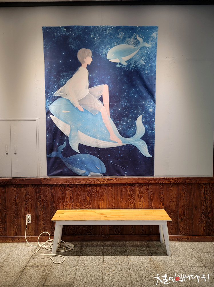 식당 들어가기 전, 벽면에 고래그림이 걸려있습니다.